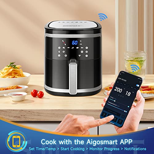 【Smart APP Control】Remotely control this airfryer through the Aigosmart app, and enjoy control from anywhere to schedule, adjust, and monitor the progress of your meals. Free your hands and start a smarter way of cooking!