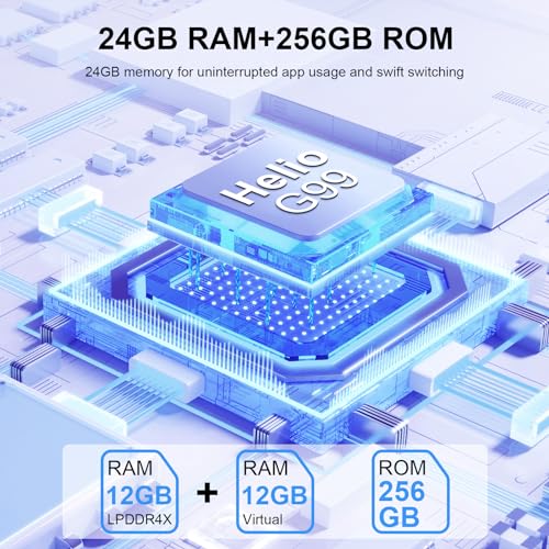 🚀24GB RAM+256GB ROM & MediaTek Helio G99🚀Balckview A96 mobile phones carries a 6nm Mediatek Helio G99, clocked at up to 2.0GHz, thatdelivers superb performance in CPU-intensive 3D gameswhile still remaininghighly powerefficient to extend thebattery life. A96 sim free mobile phones unlocked Packed with 24GB RAM(12GB RAM + 12GB virtual RAM) + 256GB ROM storage combo, let multitasking becomes faster and smoother, and can be expanded up to 1TB via SD card.