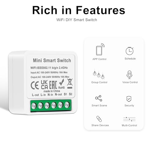 Design and Set up: This sensible swap module with mini design (4.0×4.0×2.0 cm) may be positioned into the unique wall swap field, which might change the rocker swap into a wise one. Enter&Output: AC 100-240 V, 16 Amp, 2200 W Max.