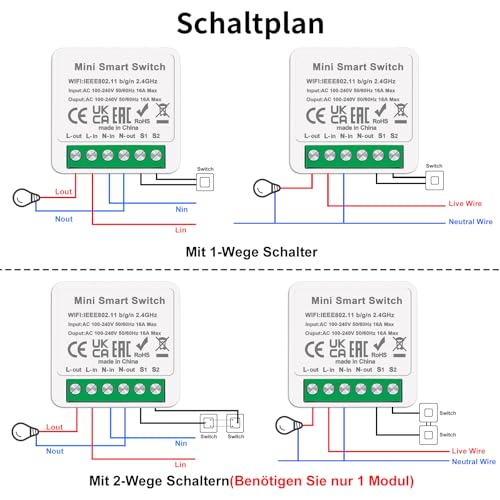 Specification: CNBINGO 4 Pack WiFi Smart Light Switch, Mini DIY Breaker Module, Compatible with Alexa Echo, Google Assistant, Fits Behind Rocker Wall Switches, Support 1 Way or 2 Wayï¼Need Neutral Wire