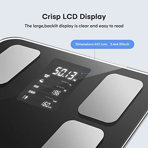 Specification: EEBBL Digital Smart Scale for Body Weight, Bathroom Scale BMI Weighing Bluetooth 5.0+ Body Fat Scale, Body Composition Monitor Health Analyzer with Smartphone App, 400 lbs – Black