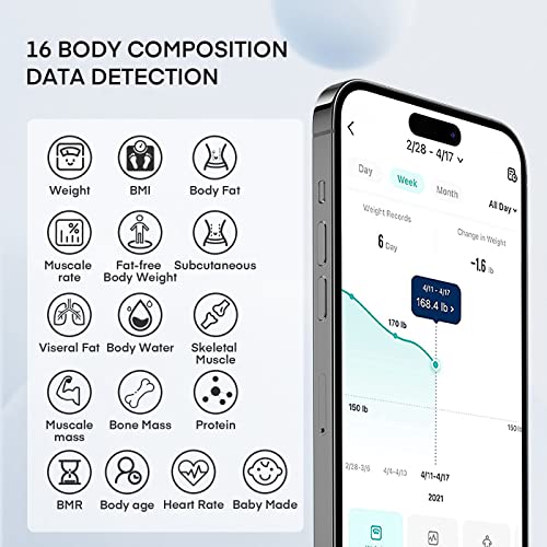☢【Good App Syncs With Health App】: Utilizing a easy and handy computerized identification interplay, you possibly can really feel the movement of information in actual time whereas measuring. By setting clear weight reduction objectives your self, Fitdays will customise a fats loss program for you, protecting all elements of what to eat, what to follow, and how one can follow, so you possibly can say goodbye to the mistaken approach to shed weight and slim down effectively. The sensible scale connects to smartphones Android 4.3+, iOS 8.0+ (iPhone, IPad, iWatch gadgets). Fitdays app works with Bluetooth 5.0 and it’s appropriate with Samsung Well being, Apple Well being, Fitbit and Google Well being. The app can be accessible for Apple Watch.