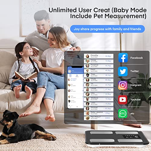 ☢【One Scale Limitless Customers】: Fitdays APP saves knowledge after every measurement. File your each day gentle weight change course of and monitor your each day, weekly and month-to-month progress to witness your physique’s metamorphosis and assist encourage you to attain your objectives. It helps including limitless customers, and when a number of individuals use it, it would intelligently establish totally different customers, document and retailer knowledge individually. And the measurements are usually not saved, completely guarding your personal data. Fitdays app additionally helps child mode, which lets you document the burden of youngsters and pets.