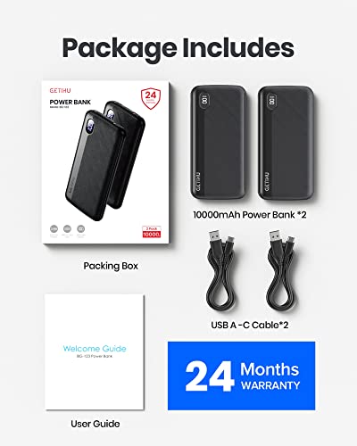 ✅【What You Get】GETIHU 10000mAh energy financial institution*2, USB C cable*2, welcome information*1, 30-day a refund, hassle-free 3-year guarantee plus lifetime technical help.