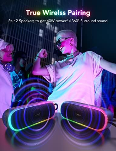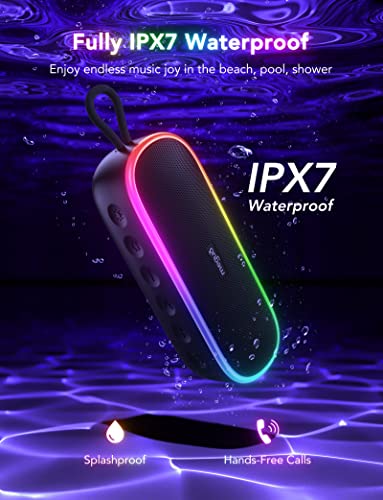 MEGUO Bluetooth Speaker Wireless, Portable Wireless Bluetooth Shower Speakers with RGB Lights, Powerful Bass, TWS Pairing, Louder IPX7 Waterproof Outdoor Speaker for Garden Party Sport Home Travel