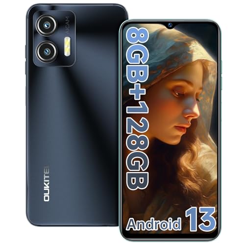 Specification: OUKITEL C36 Mobile Phones SIM Free Unlocked Android 13 (2023 Latest Smartphone), 8GB RAM+128GB ROM, Octa-Core, 5150mAh battery, 6.56 inch HD+ Display, 4G Dual SIM, Face ID&Fingerprint, GPS
