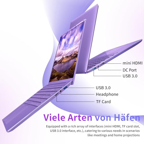 【12GB DDR5 and High Speed SSD 】The UDKED 16 inch purple computer comes with 12GB DDR5 RAM and High Speed SSD, plus an expandable TF card slot for up to 512GB. Rich interface options, including 2xUSB 3.0, MINI HDMI, etc,provide you with enough storage space and diversity to ensure that you can easily cope with running numerous projects or data storage,making your work and learning more efficient and convenient!
