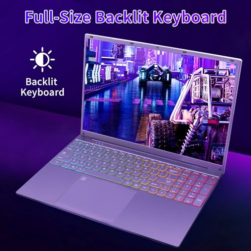 UDKED 16 inch Laptop,Intel N95 CPU(up to 3.4GHz),12GB DDR5,1920×1200 IPS Display,Windows 11 Laptops,Narrow Bezels,Numeric/Backlit KB,USB3.0,Dual Band WiFi,HDMI Purple Notebook PC (Purple/256G SSD)
