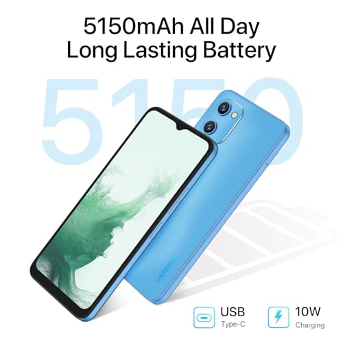 Specification: UMIDIGI Mobile Phone (2023) G1 Plus,Android 13 Go SIM Free Unlocked Smartphone,5150mAh Battery,6.52”HD+Screen 3+32GB RAM/256GB Extension,13MP Camera 4G Dual SIM/Face ID/GPS OTG/UK Version(Blue)